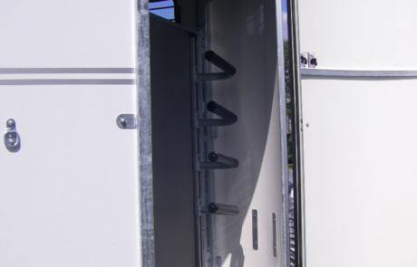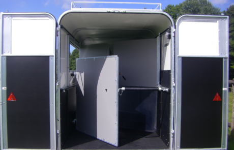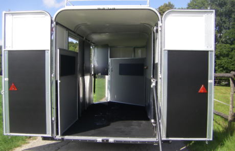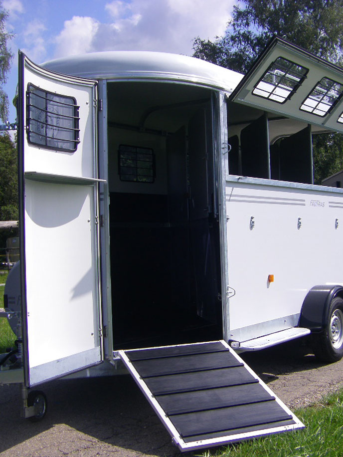 Der Fautras Oblic +4 mit Vollpolyesteraufbau ohne Holz, bedeutet für Ihre Pferde höchsten Fahrcomfort. Der Transport in Schrägstellung ermöglicht es den Pferden, durch mehr Platz sich breit zu stellen und sich somit optimal sicher auszubalancieren. Dies sorgt auch für mehr Ruhe während der Fahrt. Das Einstiegen wird den Pferden durch die hinteren Flügeltüren erleichtert und ist benutzerfreundlicher und sicherer, als eine schwere Laderampe am Boden liegend. Die Be- und Entladung der Pferde kann problemlos durch eine Person alleine erfolgen.